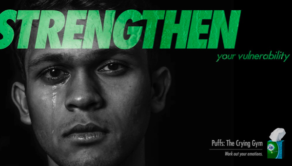 Above, we have an Advertisement from a man named Patrick Huang. It is advertising his idea about a “crying gym” for men as men struggle with opening up and being vulnerable with their emotions. Men have been constructed by society to put a wall up and protect the people around them, whilst doing this they are constantly hiding their true emotions and pushing their feelings aside. This then creates an even bigger issue … men don’t open up and speak their true emotions. We have all this talk about feminism, which I understand, but what about men?